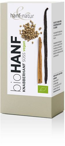 Knabberhanf süs sind geröstete und kandierte Bio Hanfsamen, verfeinert mit Zimt und Bourbon-Vanille. Der vollwertige Knabberspaß, der nicht dick macht. Zum Knabbern in den Pausen, beim Fernsehen oder einfach in lustiger Runde.